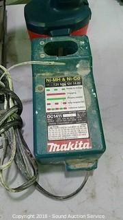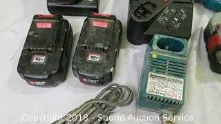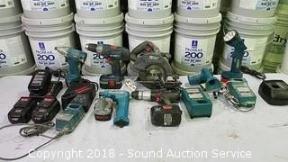Includes: Makita Drills & Chargers, Bosch cordless drill with charger, Makita flashlight, Craftsman cordless drill, cordless circular saw.