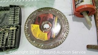 Lot #0556: Various Hand Tools & Toolbox w/Hole Saw Blades