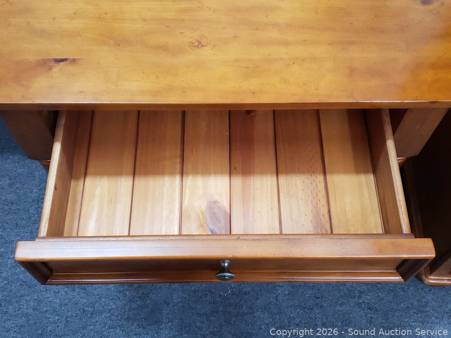 30" H x 32" W x 18" D. In great condition. All wood condition. Dovetail joinery. matches the next lot.