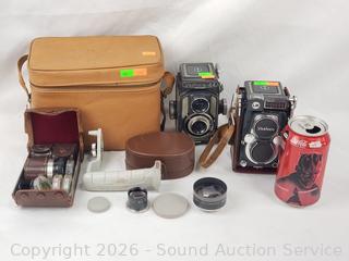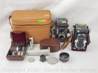 Lot #0109: 2 Vintage Yashica 44 Film Cameras w/Case & Accessories
