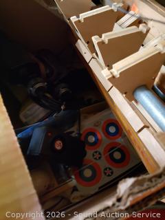 306 Lots including Shop Smith, Lathes (Parts/Repair), GE Upright Freezer, Vintage Painted Secretary Desk w/Extensive Hutch Top, Vintage Armoire, BB/Pellet Guns, Violins, Butcher Block Top, Vintage/Antique Cameras, Spotting Scopes, Microscopes, Telescopes, Antique/Vintage Literature, Reloading Brass, Dies, Press, Antique Apothecary Chemist Scale, Leaded Stained Glass Window Décor, Balsa Wood Model Airplane Kits, Rifle Sleeves/Cases, Vintage HO Scale Train Cars/Track/Transformers, Vintage/Antique Clocks, Bose Speakers & More!!!
