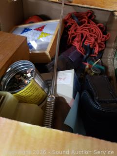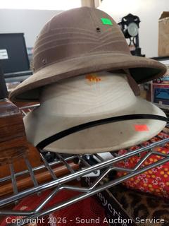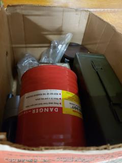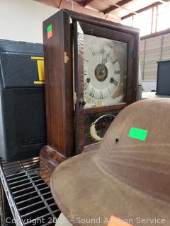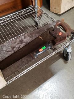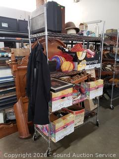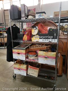 Safari helmets, model kit, antique mechanical mantle clock, frisbees, balls, telescope, US Government canteen, chafing fuel, crosscut saw, machete, Lond Fog peacoat S:XL, household goods, etc. Cart is NOT include. ATTN: All items are used, may be missing pieces, damaged, not functioning, complete, no issues, etc. All items as is. Refer to photos for more details.