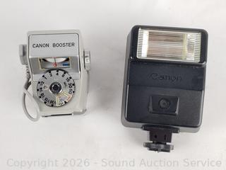 Lot #0290: 4 Canon Lenses, Flash & Booster