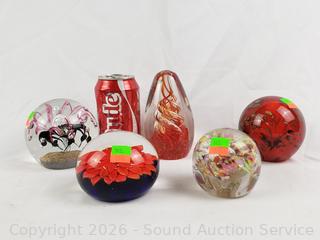 Scuffs, scratches. One has a Dynasty Gallery sticker, don't see any other makers marks, 2.75" to 5.25" H/W/Dia.