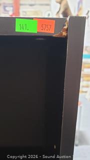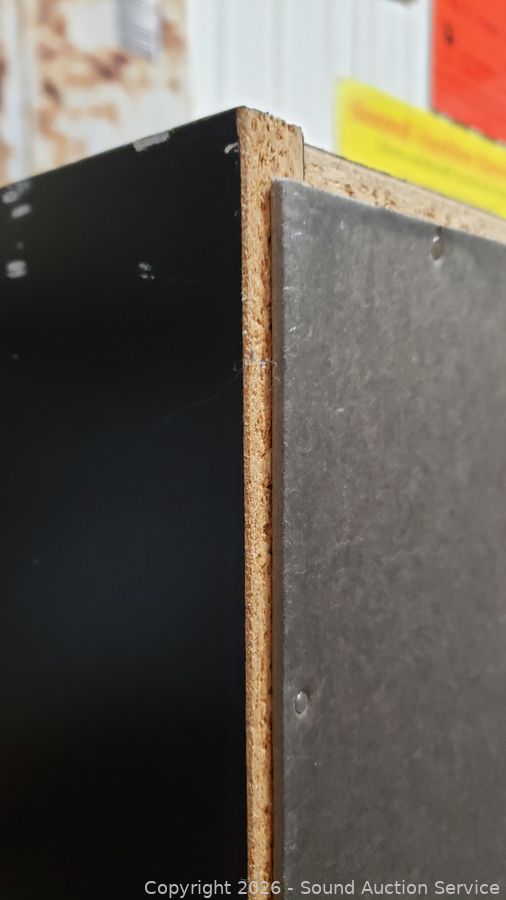 Particleboard construction, laminate finish. 71.75" H x 29.75" W x 11.75" D. Chip on top right corner.