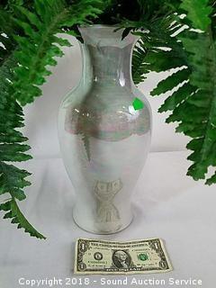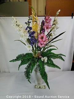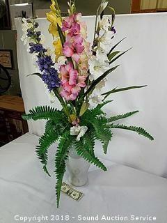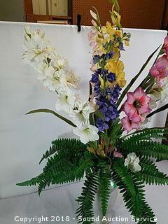 Lot #0265: Iridescent Vase w/Silk Ferns & Gladiolas