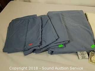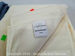 One is Charisma, needs washed, only the flat and fitted. Other is Sateen, 540 thread count, comes with flat sheet and (3) pillowcases.