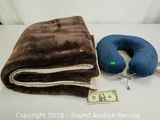 Lot #0280: Sherpa Blanket & Memory Foam Travel Pillow