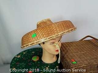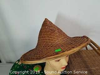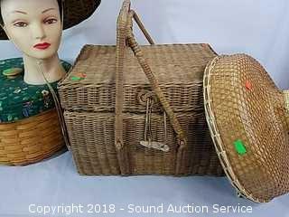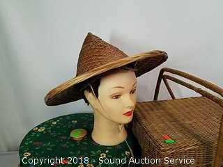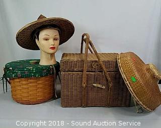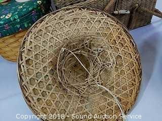 Lot #0263: Wicker Woven Picnic Baskets & Oriental Sun Hats