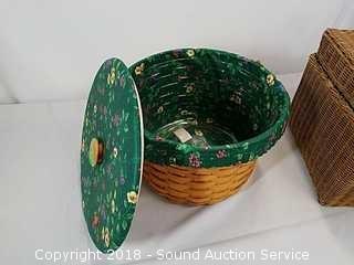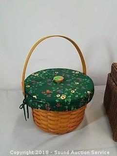 Padded basket is a Longaberger 9" tall, 13" diameter. Picnic basket is 11" tall, 16" wide, 12" deep. Hats are expertly handcrafted, 14" Diameter.