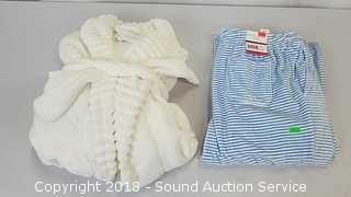 Robe is by Carole Hochman, ivory color. Bottoms are ivory and blue. Size medium.