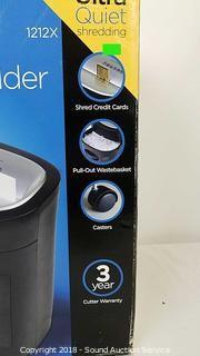 Shreds up to 12 sheets, ultra quiet, on castors. Model 1212X.