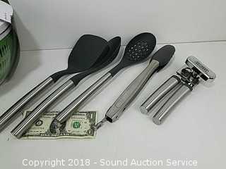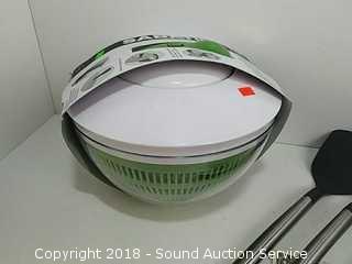 Lot #0067: Sabatier 2-in-1 Salad Spinner & 5pc. Utensil Set