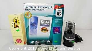 Lot #0192: Sheet Protectors, Pencil Sharpener & Post-Its