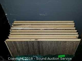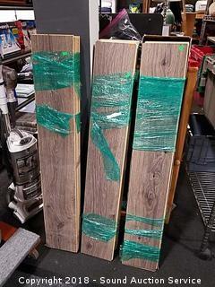 (9) planks, 7-1/2" wide, 47-1/2" L, 5/16" thick. 22 sq. ft. per bundle. You get three bundles. On one of the bundles, approx. 3" has been cut off the end.