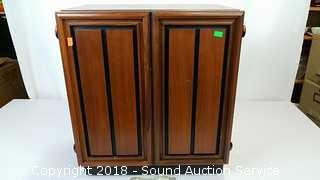 No speakers or power cord. In really good condition. Approx. 20" H, 17-1/2" L, 11-1/2" W.