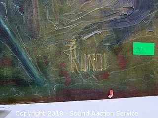 Someone went over the print to give it depth and make it look like it has paint strokes. Approx. 24" x 36".