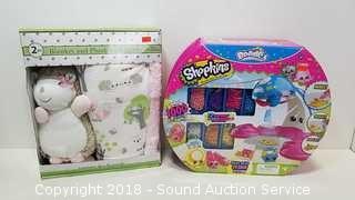 Lot #0103: 2pc. Plush Blanket & Shopkins Bead Kit