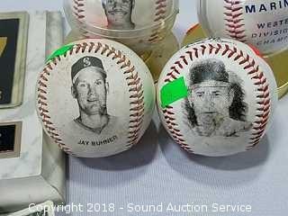 Includes: Collectors plate, plaque, (3) portrait baseballs, autographed 1995 Mariners baseball