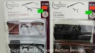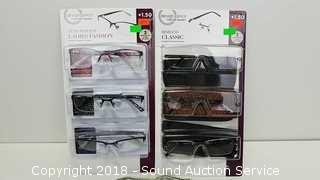 (6) pairs total, each pair comes with a coordinating case. In original packaging. Includes: Rimless Classic & Semi-Rimless Ladies Fashion.