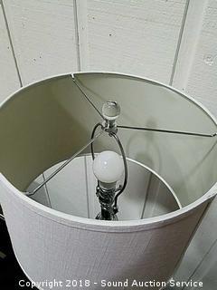 Approx. 5ft tall. Like new. hardback fabric shade. Tested, works.
