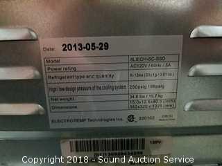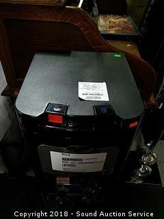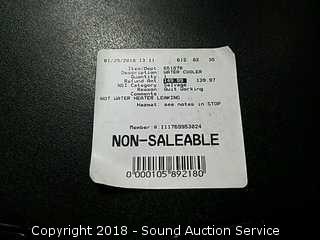Tested, works. Hot water heater is leaking. Holds a 5 gallon water jug underneath. Model 8LIECH-SC-SSD. Approx. 15" x 12.6" x 40.5".
