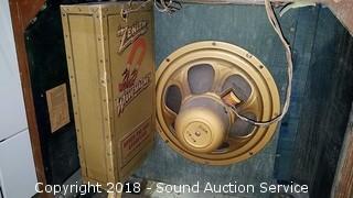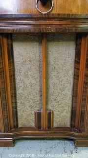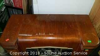 Has a crack in the veneer on the top. Consigner says it works. It is very clean. Did not plug in and test. Approx. 40" H, 27" L, 12" W.