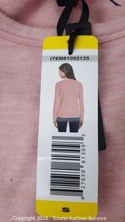 Top is pink melange color. Vest is button up, black color.