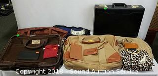 Lot #0130: Synthetic Leather Briefcase & Various Handbags