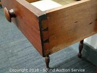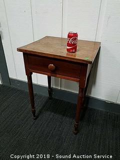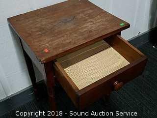 Lot #0228: Vtg. Solid Wood Single Drawer Side Table