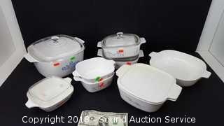 13 pieces including lids. Includes: (3) 5-1/4", (3) 7", and (2) 8-1/2".