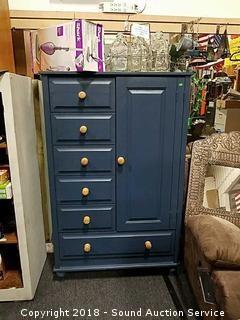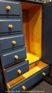Lot #0115: Blue Painted Solid Wood Highboy Dresser