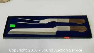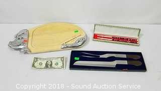 Lot #0234: Burnco Carving Set, Cutting Board & Chopsticks