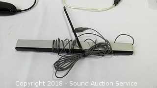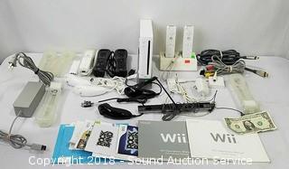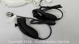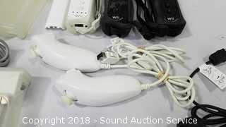 Includes: (5) controllers, (4) nunchucks, charging dock, and (6) controller covers. Also comes with a 4 port USB hub and owner's manuals. Tested, works.
