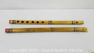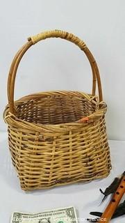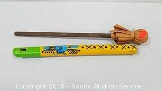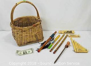 Lot #0211: Primitive Wooden & Bamboo Instruments w/Basket