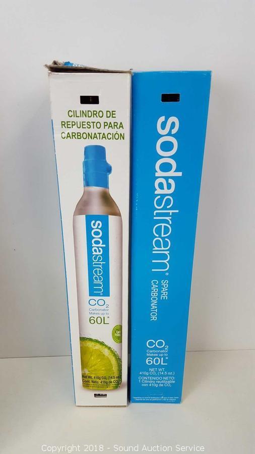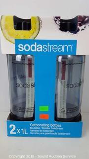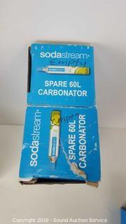 Includes: Bottle carbonation machine, spare carbonators, and bottles. Each spare carbonator carbonates up to 60 liters. Bottles are 1 liter bottles. All are in original boxes.