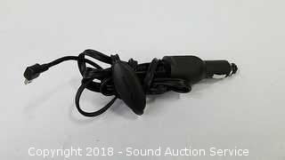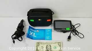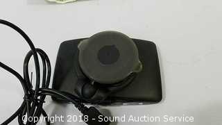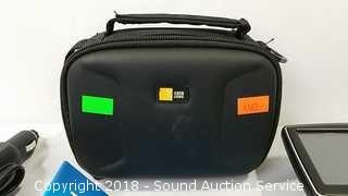 Tested, works. Comes with USB cable, car charging cable, window mount, manual and case. Has a 4.5" screen.