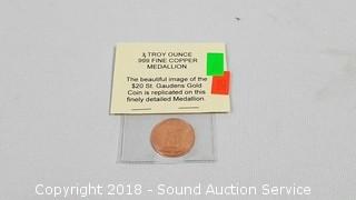 Lot #0238: 1/4 Troy Ounce .999 Fine Copper Medallion