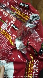 Chicken, rice and vegetable formula. Complete and balanced for small adult dogs. Small rip in the bag.