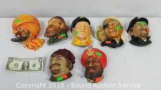 All are made in England. Includes: Skipper, Fagin, Pirate with a Parrot, Man with a Turban, Captain by Gatco, Deckman by Gatco, and another guy with a turban. Very few signs of ware. The Gatco busts are not chalk.
