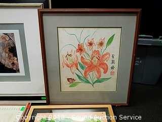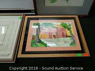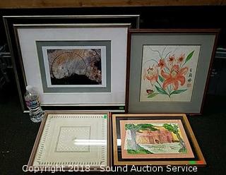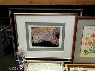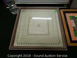 Lot #0202: Framed Photo, Knitted Artwork & (2) Paintings