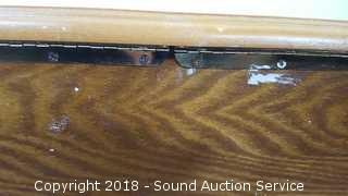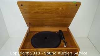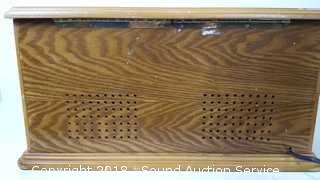 Wooden enclosure. In good condition. Tested, works. Approx. 9" H, 18" W, 13" D.