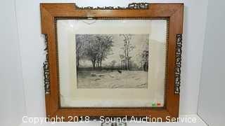Lot #0210: Vtg. Framed "The FIrst Snow" Print