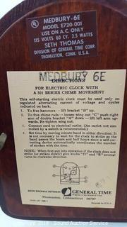 Self starting. It is a Medbury-6E. Model E720-001. German movement. Cannot seem to get it to work. Approx. 9-1/2" H, 20-1/4" W, 5" D.