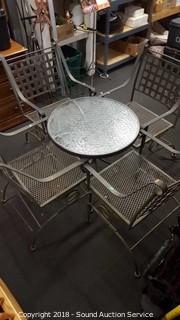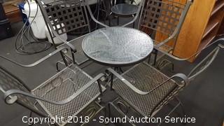 Lot #0015: Wrought Iron Glass Top Patio Table & Chairs