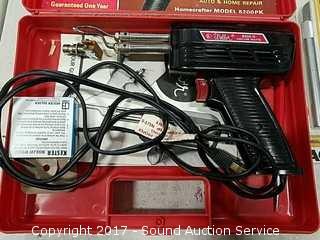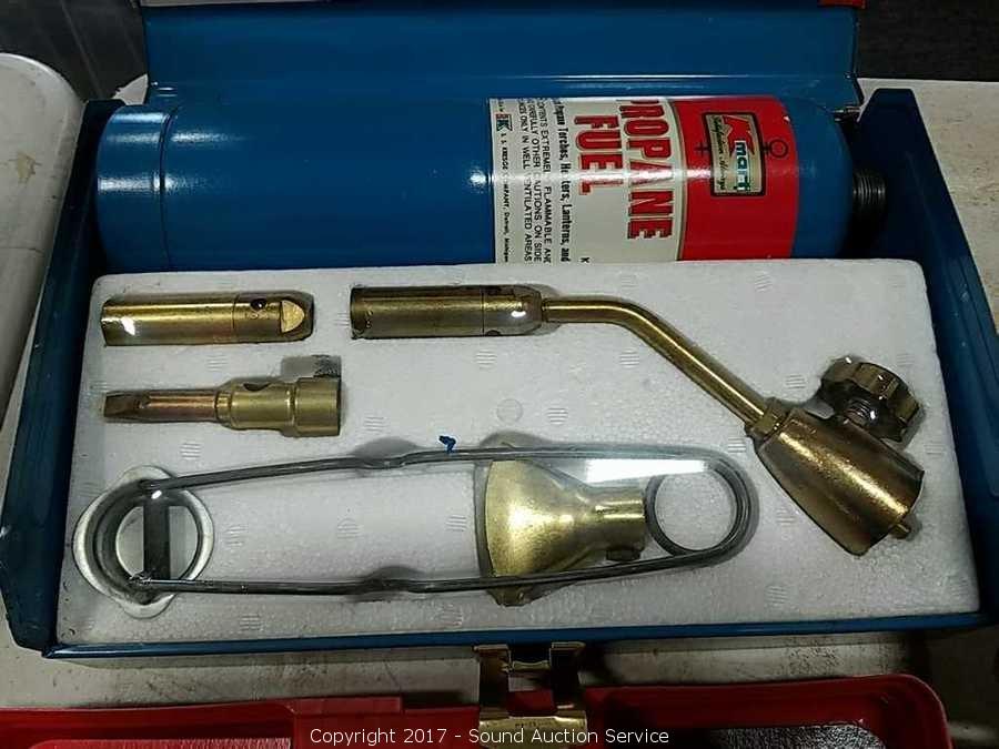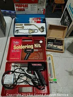Comes with propane torch, soldering gun, exacto knives.