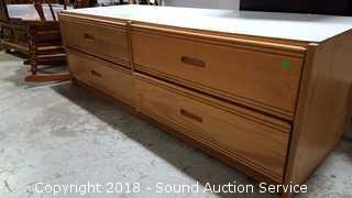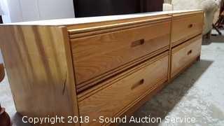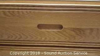 Oak finish. Approx. 19" H, 61" L, 22-1/2" D.
