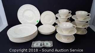 Includes: (8) cups, (8) dinner plates, (5) snack plates and (8) saucers.