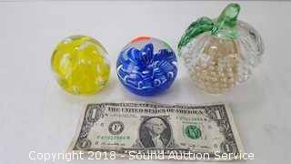 Lot #0011: (3) Embossed Art Glass Paperweights