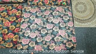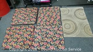Lot #0312: (4) Floral Print Chair Pads & Accent Rug